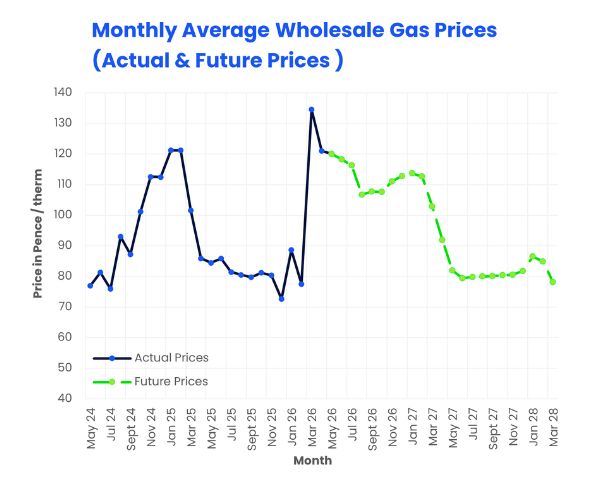- Current wholesale gas prices are 8.8% lower than March 2026 (last month), and 40.8% higher compared to April 2025 (last year).