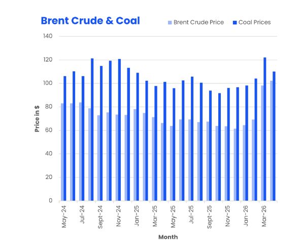 - As of April 13th, coal prices trades 9.8% lower this month, closing at $104.85 per metric tonne. This represents a 8.8% increase year-on-year.